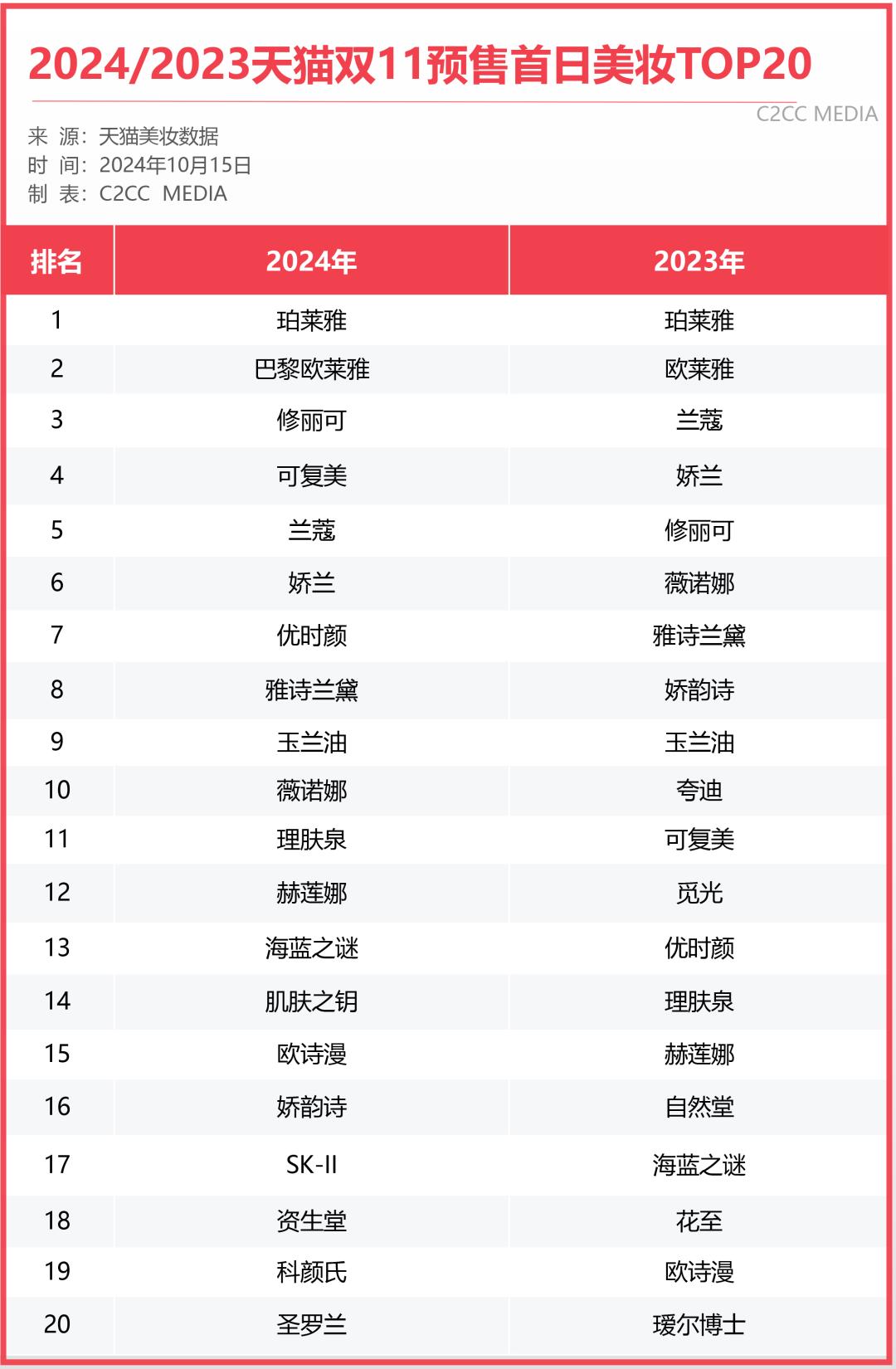 天猫平台,10分钟内,珀莱雅、欧莱雅、修丽可、兰蔻、可复美、娇兰、雅诗兰黛、赫莲娜、玉兰油、海蓝之谜、娇韵诗、肌肤之钥、欧诗漫13个品牌相继破亿;前30分钟破亿品牌达20个。