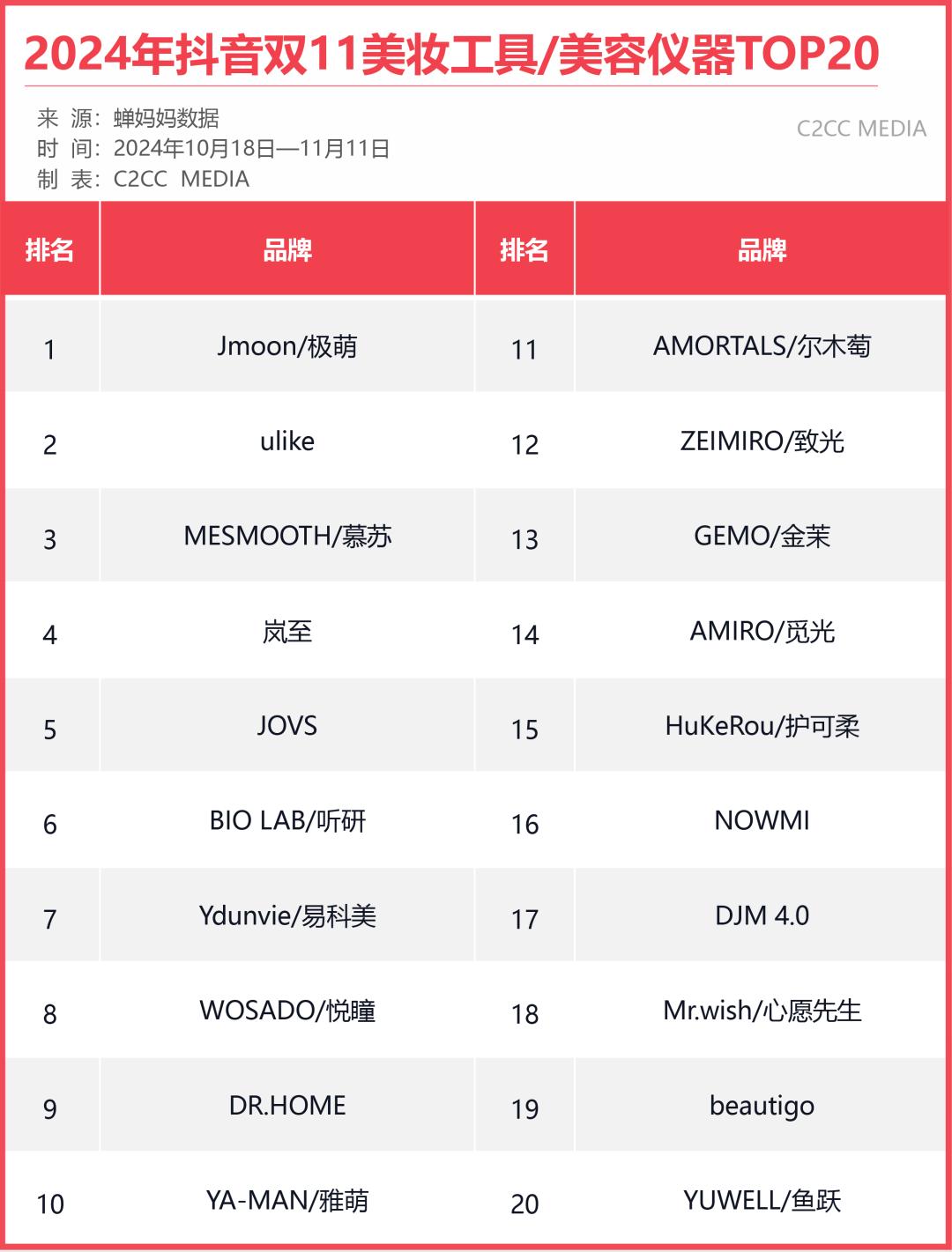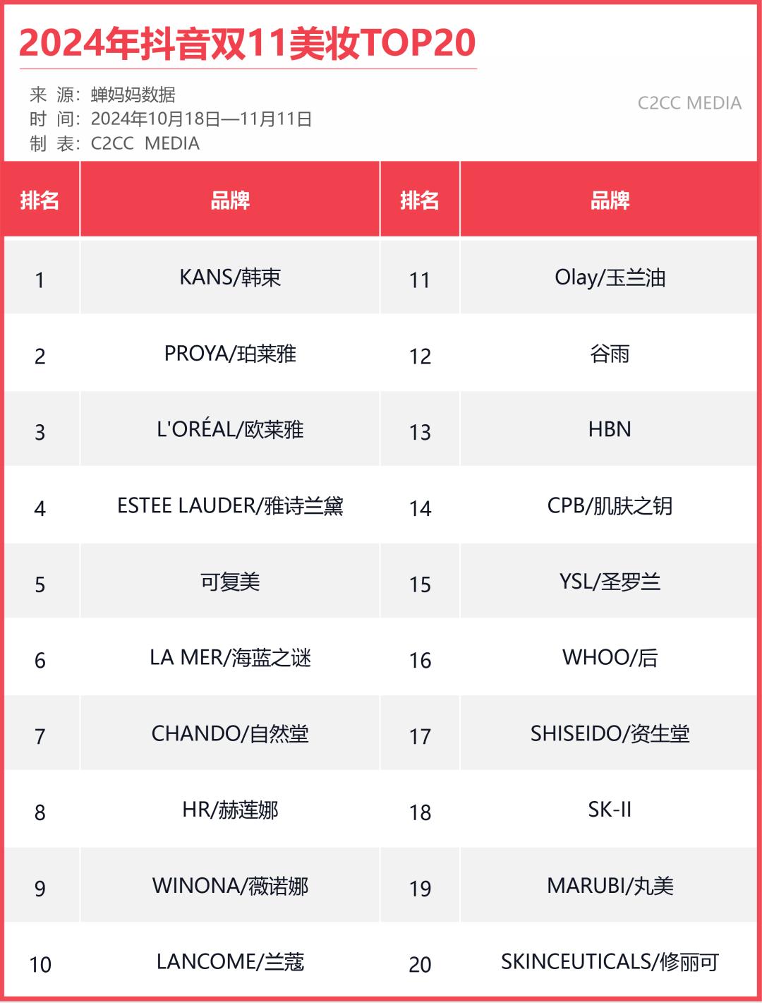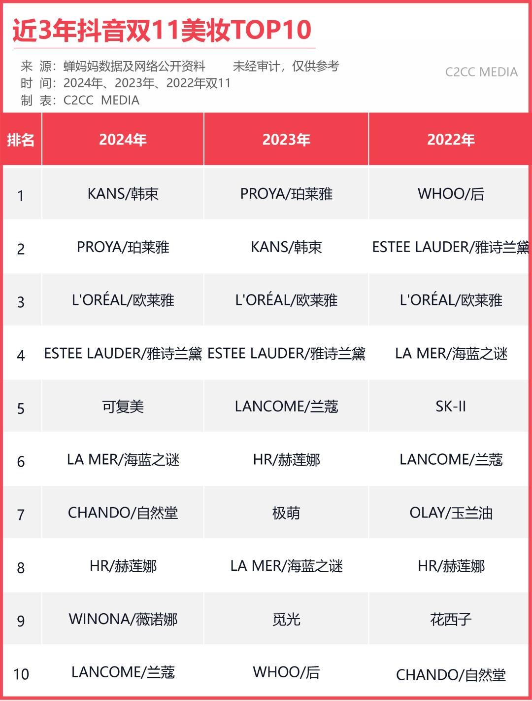 C2CC传媒×新妆根据蝉妈妈数据进行拆解,从本届抖音双11(10月18日—11月11日)美妆榜单、细分类目榜单以及近3年榜单中洞察哪些品牌基业长青,哪些品牌逆势向上。