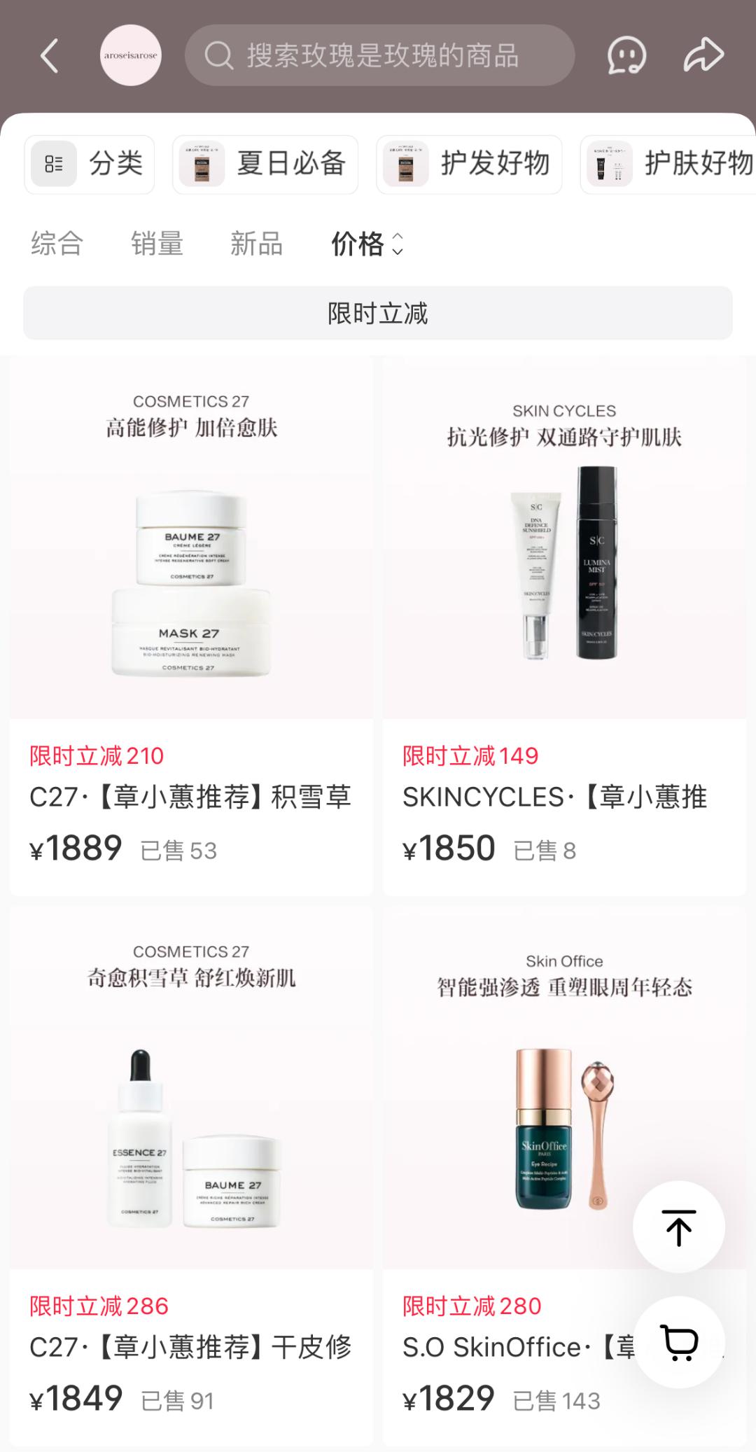随着文字积累的信任不断沉淀,她的全球小众美护集合店“玫瑰是玫瑰”微信小程序顺势上线,完成了“以文养商”的初步布局。