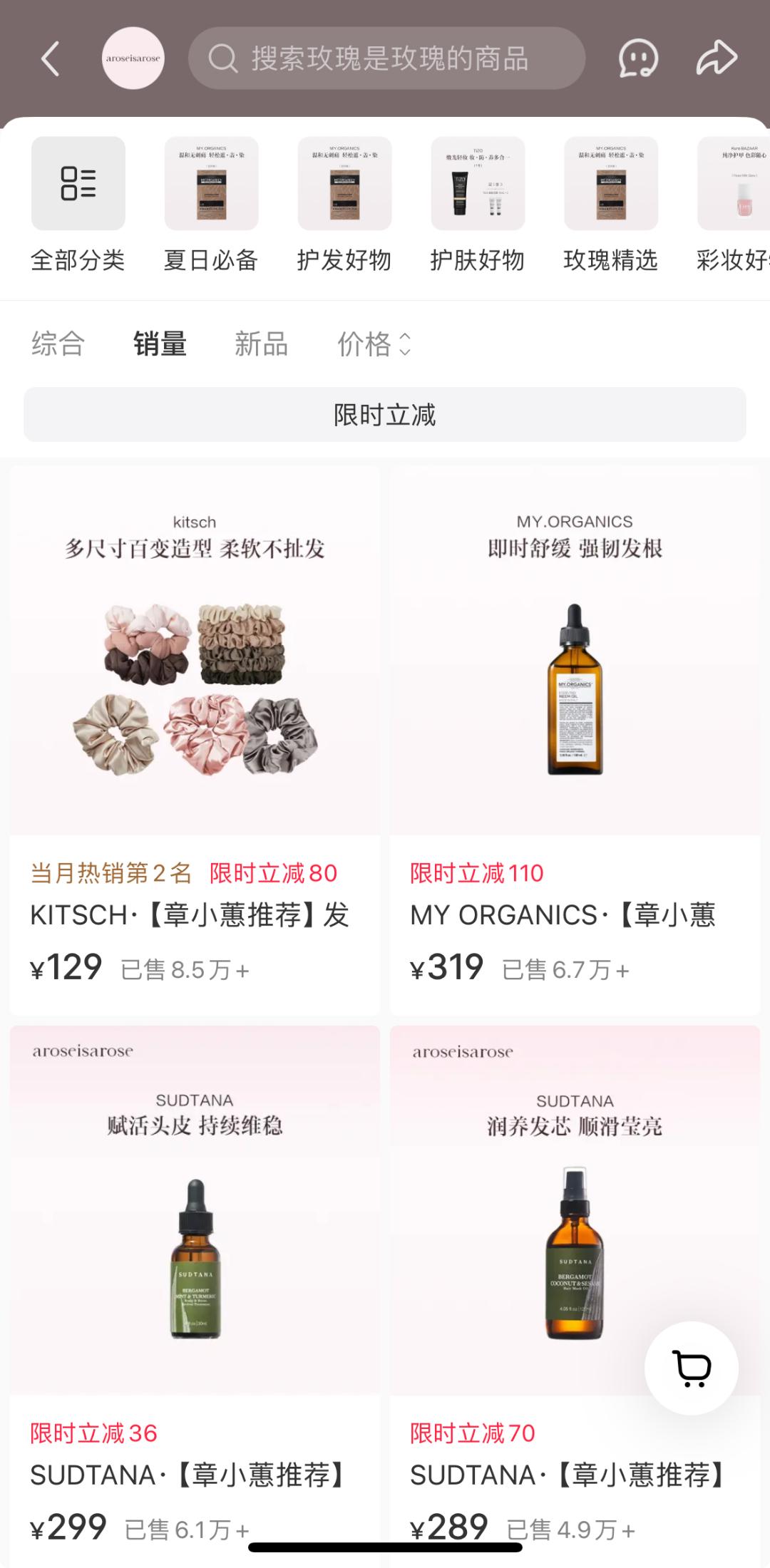 同年10月的二次开播,销售额更是突破亿元,其中5个中高端国际品牌(aroseisarose、MY.ORANICS、HAIRMAX、AugustinusBader、Sudtana)单品销售额均破500万,创造了小众高端品牌的销售奇迹。
