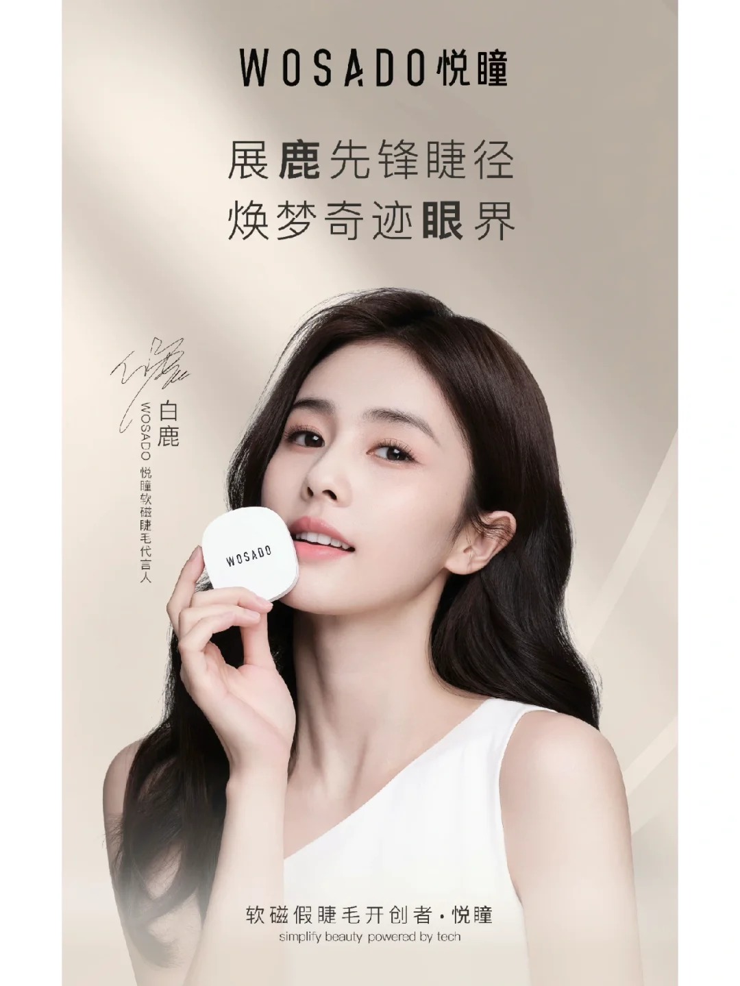 WOSADO悦瞳则开创性地将软磁科学与美妆结合,推出软磁睫毛,颠覆了传统假睫毛的佩戴方式:用户只需将带有软磁的上下两片假睫毛分别置于原生睫毛的上下方,利用磁力即可轻松吸附固定,实现“0胶上眼、即戴即美、随心拆卸”。