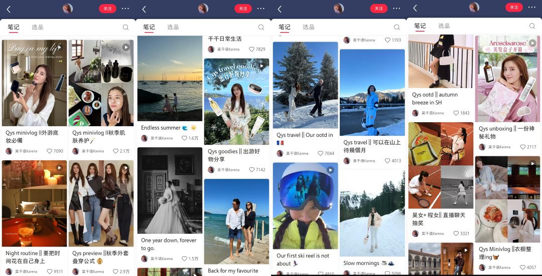 内容始终围绕个人生活展开。既有日常护肤技巧与穿搭灵感的分享,也有滑雪、冲浪、登山等兴趣爱好的记录;既有旅行探店、美食制作等生活片段,也不乏与好友相聚的温馨时刻和精心挑选的好物推荐。