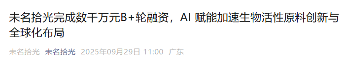 据悉,本轮资金将聚焦三大战略方向:强化AI驱动的生物材料研发平台、拓展高附加值生物材料在医疗/美妆等领域的多元应用,以及推进国际化业务落地,为公司在生物活性原料赛道的持续领跑提供关键支撑。