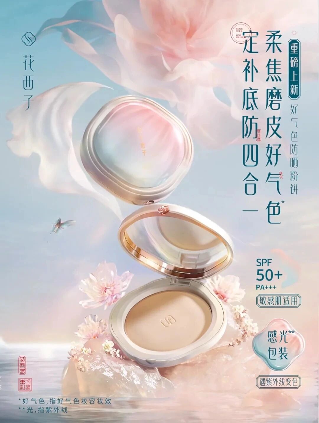 1、花西子:多功能合一的好气色防晒粉饼