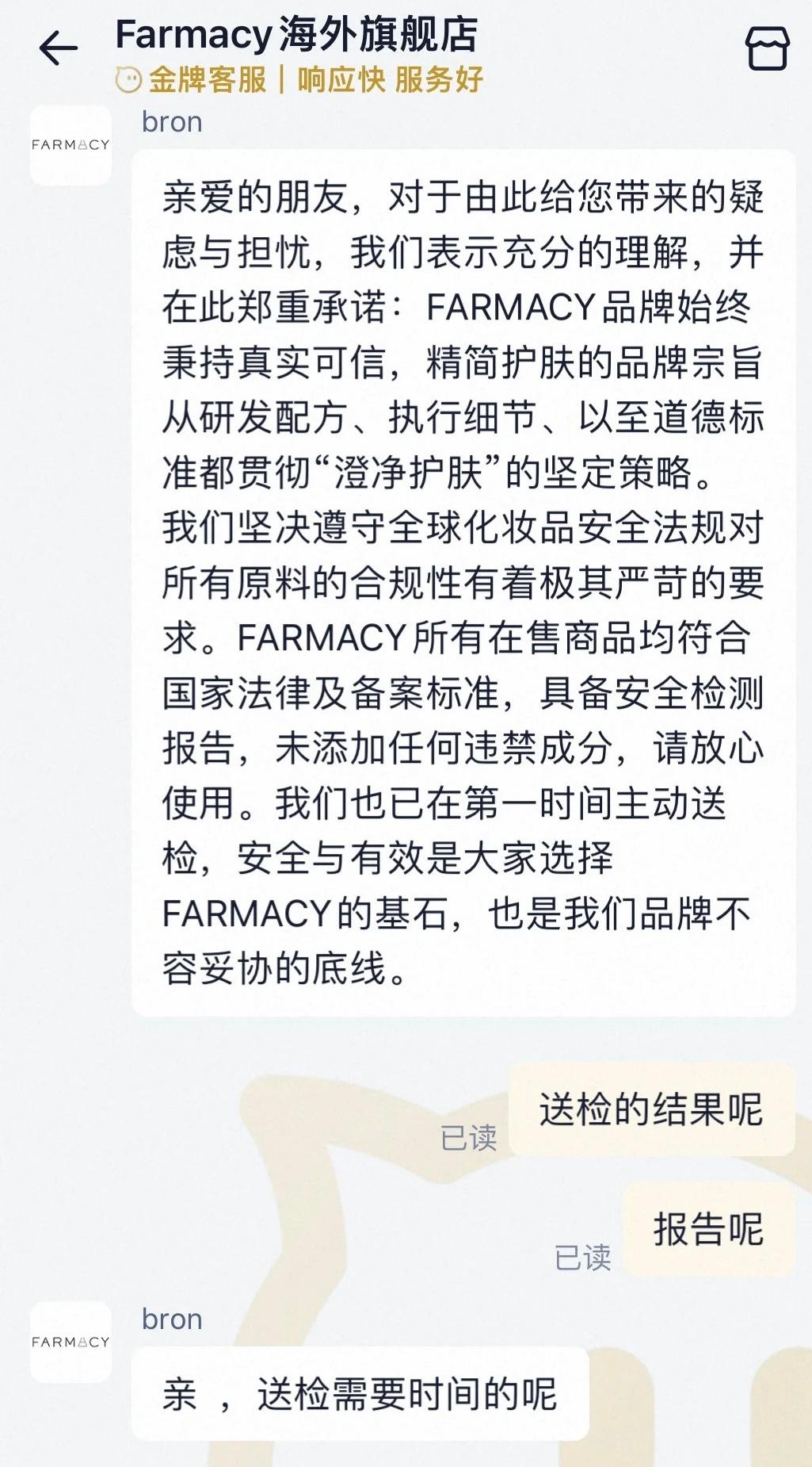 此前,部分品牌在舆论压力下承诺“已安排产品送检”,但当媒体二次跟进时,客服的答复却充满模糊性:“检测结果还没出来,再等等”“具体检测机构不便透露”“无法确定出结果时间”。