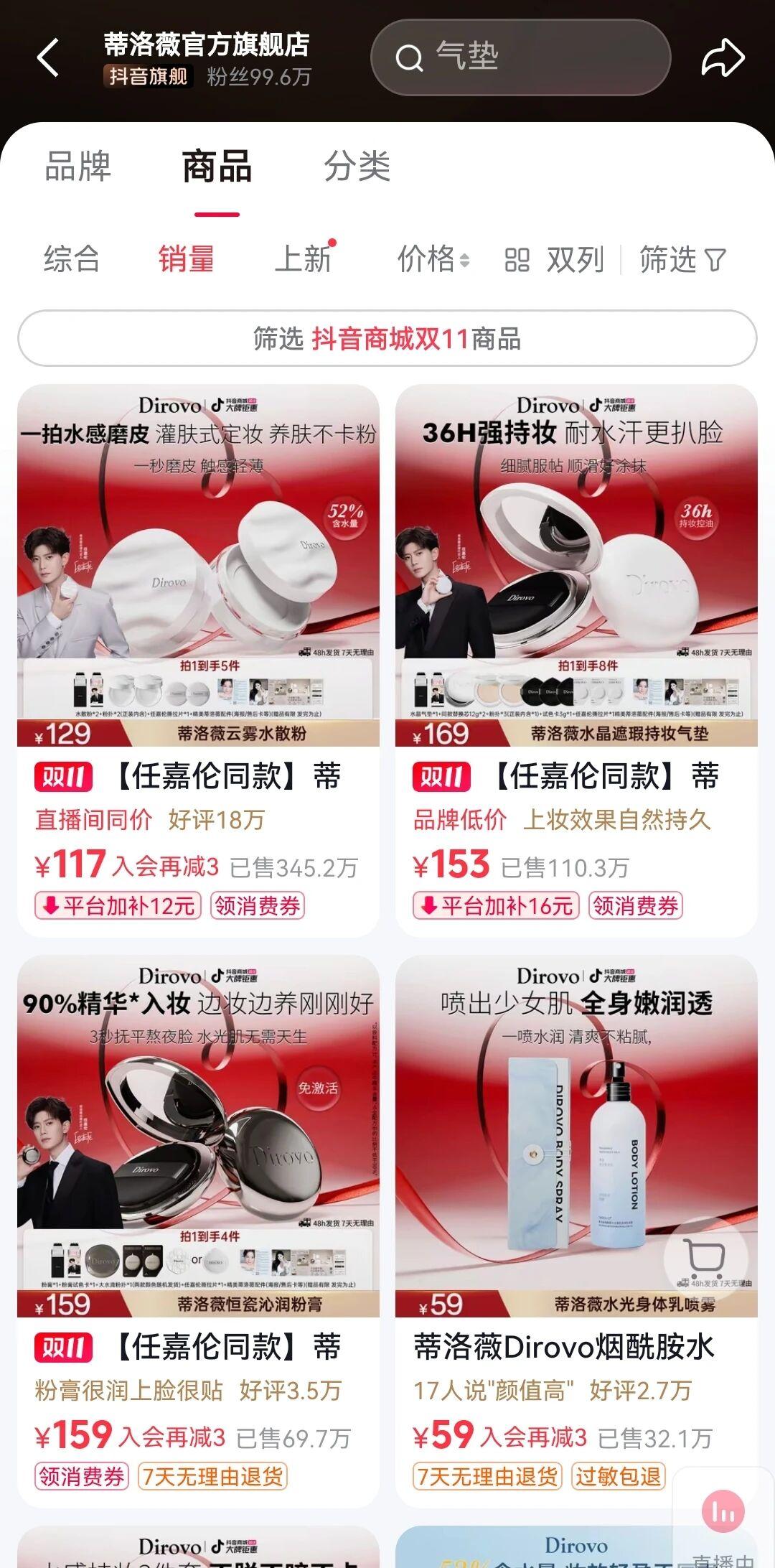 另据第三方数据,今年,蒂洛薇多月霸占抖音彩妆第一,1-10月在抖音总GMV破8亿;1-9月,其主流电商平台(淘天+京东+抖音)的GMV同比增长超360%,销售额突破10亿。