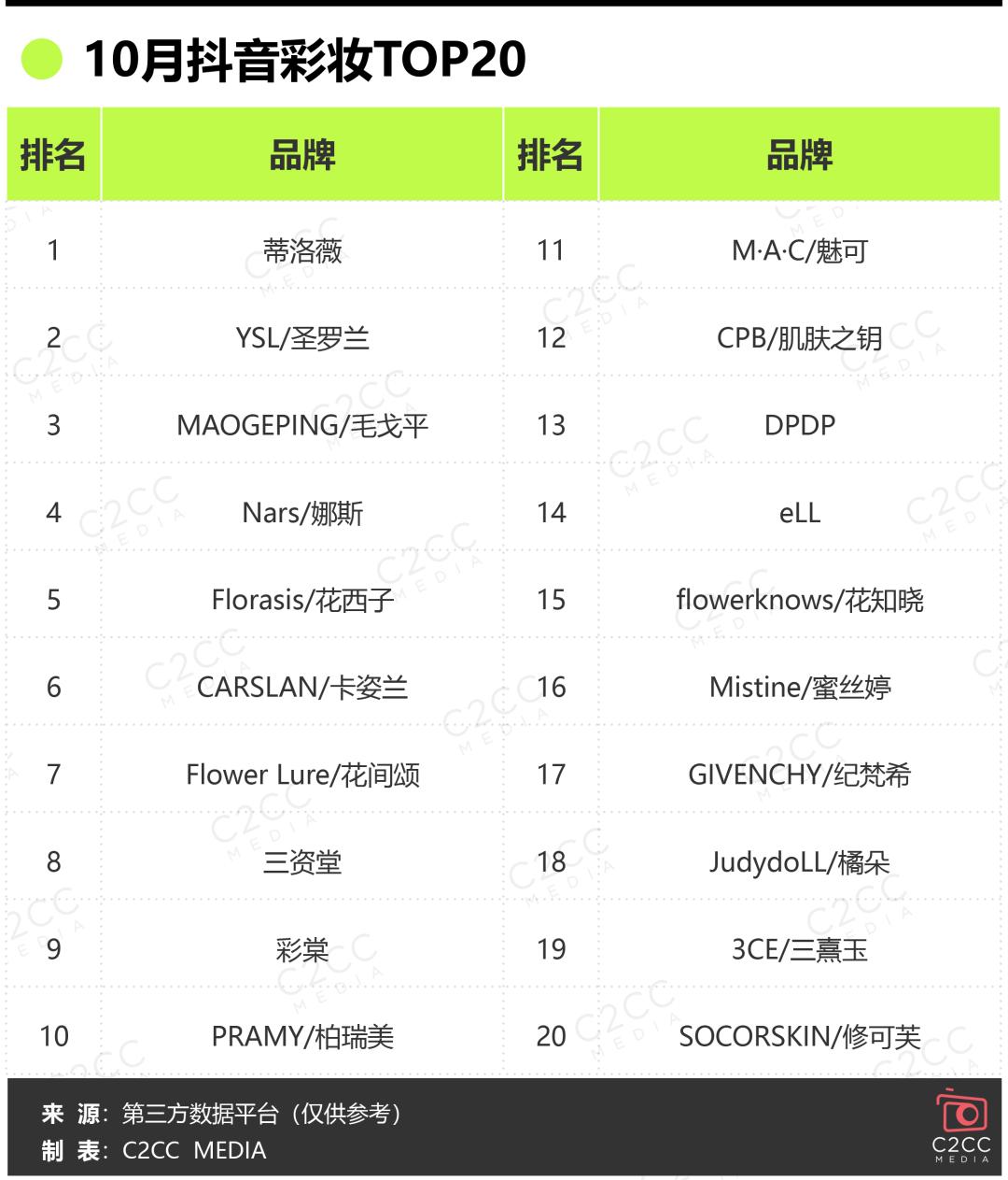 百雀羚跻身TOP4,蒂洛薇卖赢YSL,10月抖音美妆太刺激!