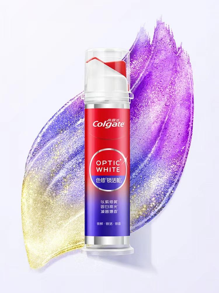 编辑点评:高露洁第二代色修锁活舱美白牙膏,将光学色修技术与锁活舱设计结合。产品通过紫色爆珠与黄金配比微珠系统,利用光学互补色原理实现视觉美白,同时采用真空锁活舱技术保持成分活性,开创了色修美白牙膏的2.0时代。