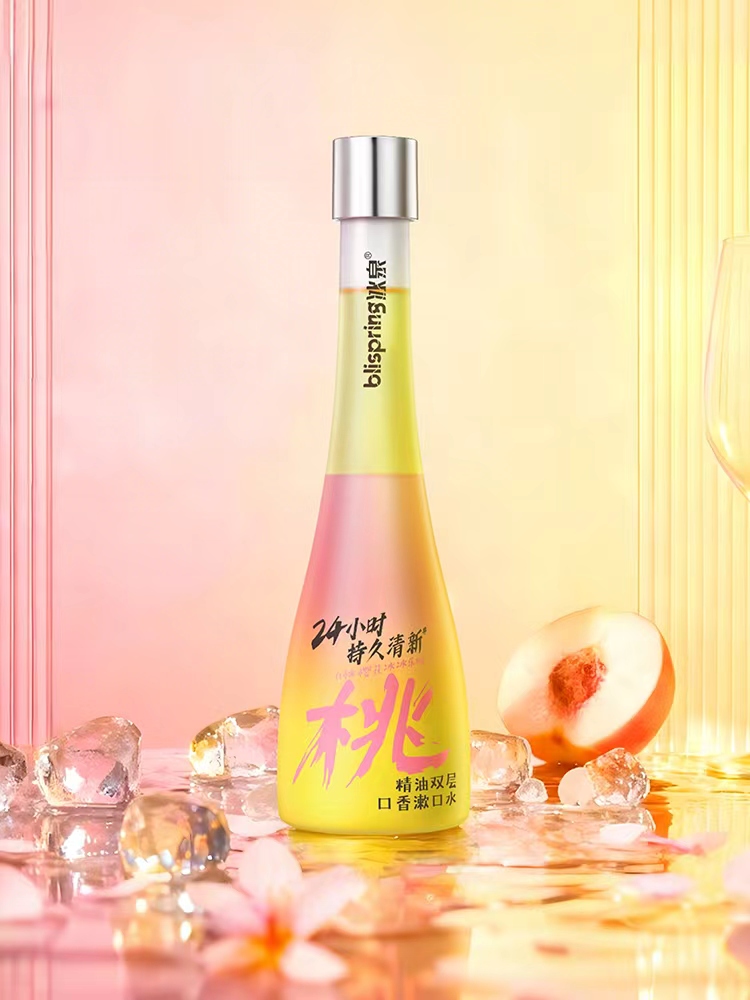 新品特色:冰泉精油双层口香漱口水,创新搭载油水分离锁活技术,打造“颜值与功效双在线”的口腔护理新体验。产品以三重配方长效清新,0酒精温和护龈,更有90%+抑菌率硬核加持,24小时清新续航。