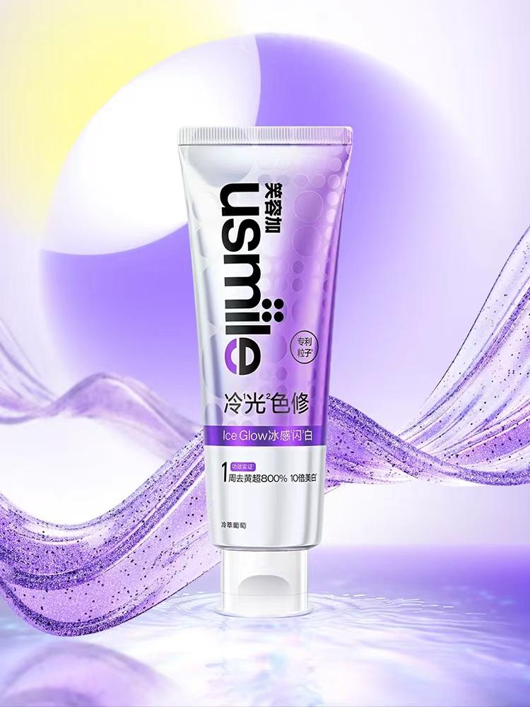 新品特色:usmile冷光色修美白牙膏2.0,通过“紫黄中和”原理,利用生物美白酶与冷光钻石因子精准分解牙渍,快速提亮牙色。真人实测显示,连续使用7天牙齿白度显著提升。