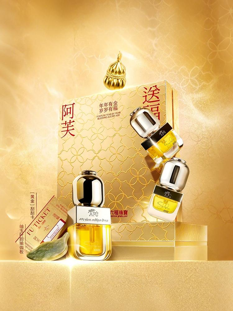 编辑点评:阿芙与六福珠宝联名推出新送福限定礼盒,以“珠宝级”护肤美学为核心,融合黄金奢护与抗皱护肤理念,满足消费者对美丽与好运的双重期待。礼盒中三款明星单品协同作用,构建起一套完整高效的抗老护肤闭环。