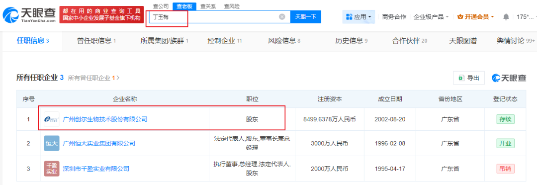 在中国商界,丁玉梅更为人所知的身份是恒大集团创始人许家印的前妻。天眼查资料显示,丁玉梅担任股东的两家存续企业里,一家是恒大,一家正是创尔生物。在恒大债务危机爆发后,其资产动向持续处于舆论与司法焦点之下。