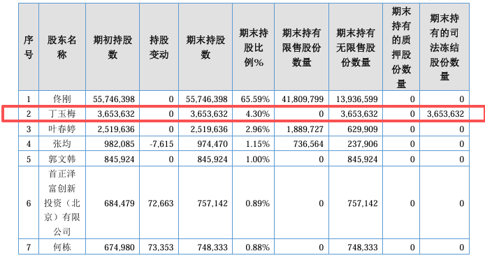 据创尔生物2025年半年报披露,丁玉梅系公司第二大股东,持有约365万股,占总股本的4.30%,该部分股份目前处于冻结状态。