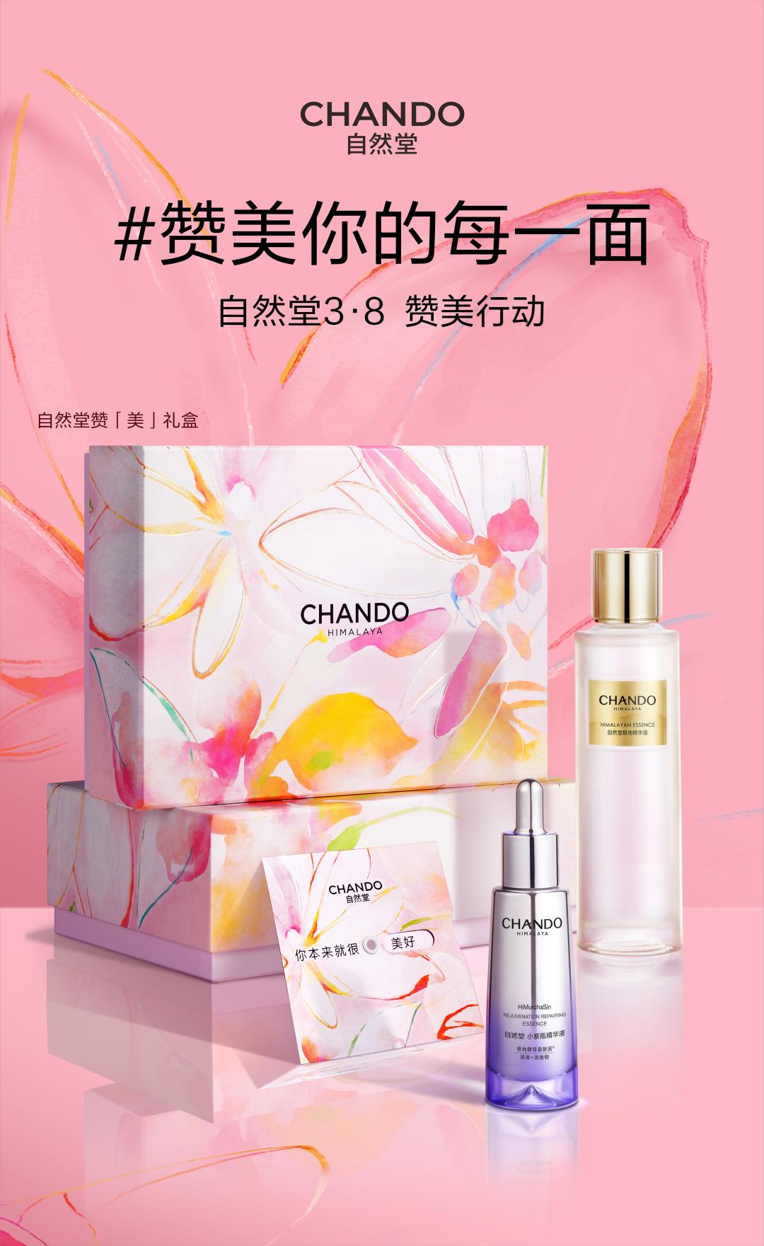 随着公众情感的积聚与圈层互动的深化,自然堂适时推出三八节专属“赞「美」礼盒”,将线上的情感共鸣转化为可感知的护肤体验。而礼盒本身即是对核心主张的实体化表达:外包装以繁花绽放的视觉语言,隐喻女性生命力的多元与绚烂。