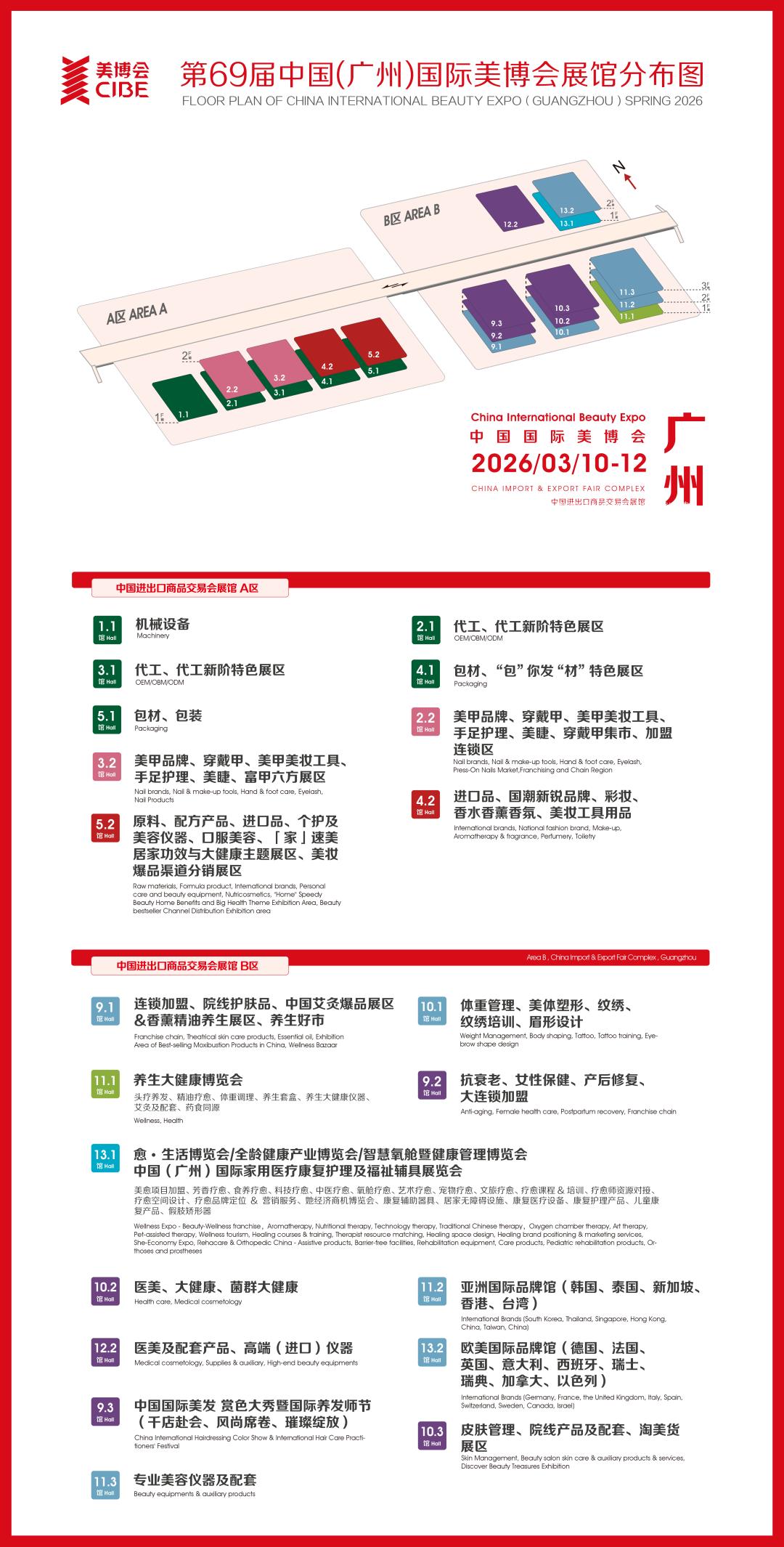 第 69 届中国(广州)国际美博会于 3 月 10 日至 12 日亮相广交会展馆。展会以全球美容产业交易服务平台为核心定位, 30 万㎡规模汇聚 3800 余家优质企业,覆盖美业全产业链,打造集高效商贸对接、跨境资源联动、行业趋势发布、产业创新赋能于一体的国际化专业服务枢纽,助力全球美容产业高质量发展。