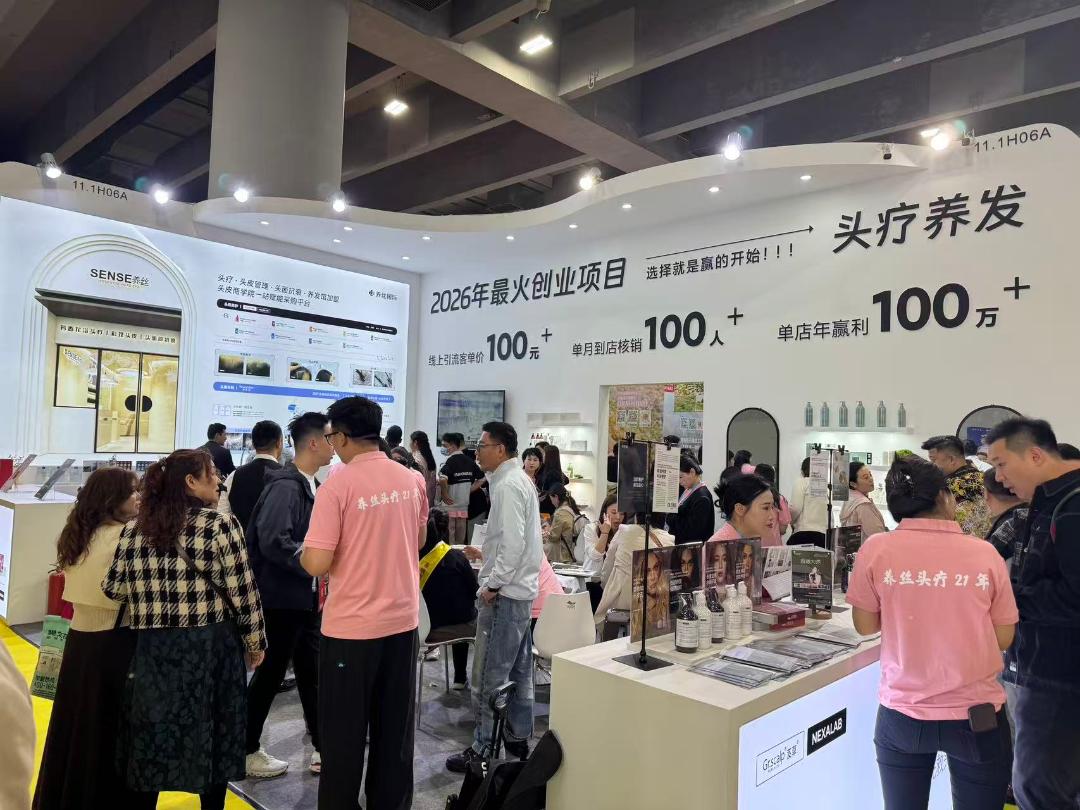 在美博会11.1馆的头疗养发专区,SENSE养丝的展位前人头攒动,“2026年最火创业项目”的标语格外醒目。 作为深耕行业21年的头部品牌,养丝正以“单店年盈利100万+”的亮眼数据,印证着头疗养发赛道的巨大潜力。