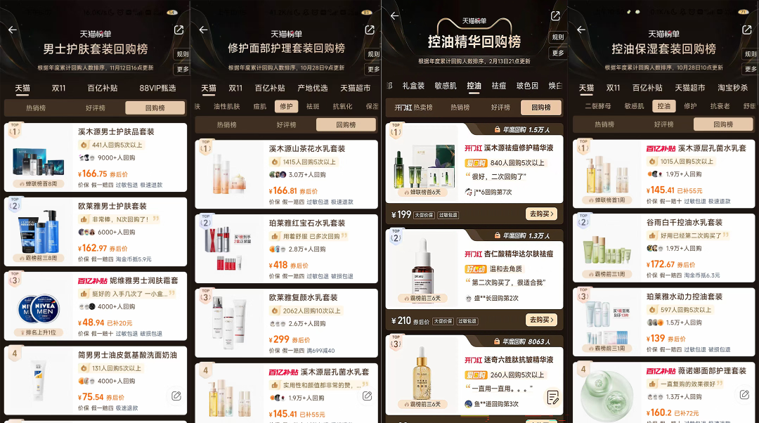 其中,溪木源男士专研控油系列获沙利文“男士护肤套装全国线上回购率第一”认证;山茶花水乳、层孔菌水乳、愈创木精华等多个王牌产品也长期占据各大主流电商平台“回购榜”榜首。